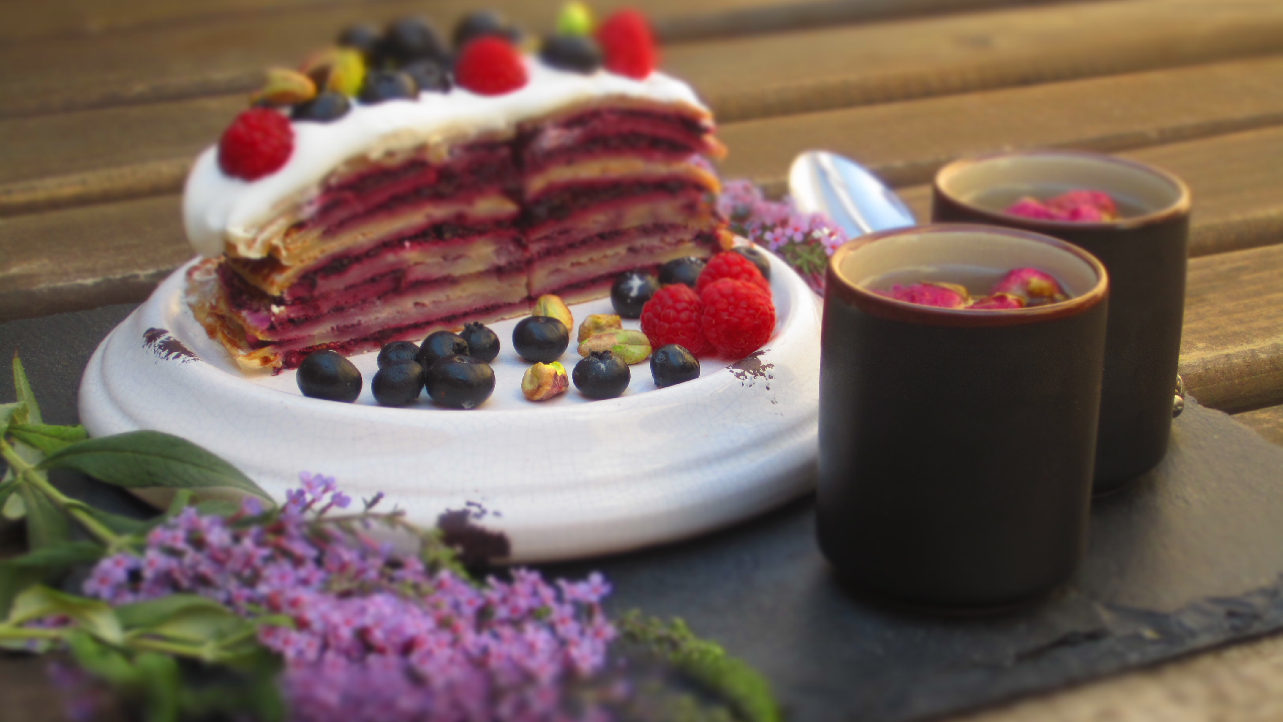 Yo decidí realizar una tarta a base de crepes junto con una mermelada de chia y frutos rojos.